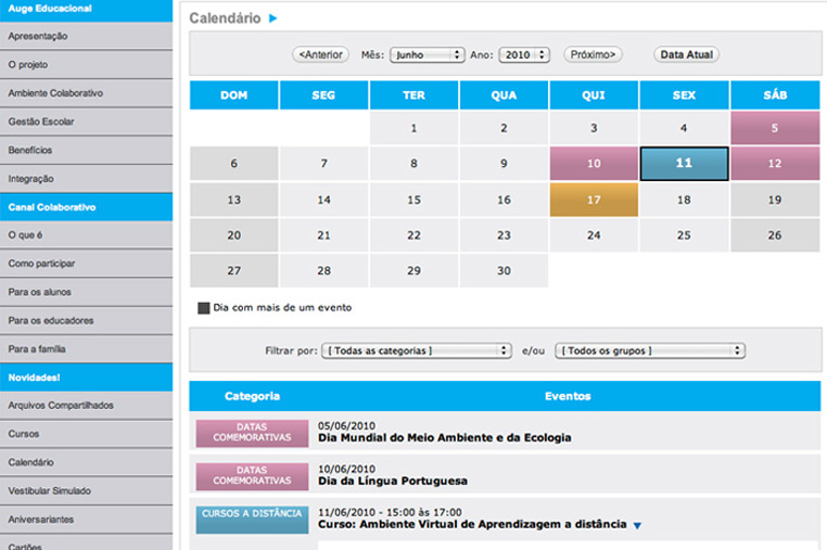 Desenvolvimento realizado na Auge Tecnologia & Sistemas em 2009. Projetei uma nova interface para o portal educacional Canal Colaborativo criado para alunos, educadores, pais e família.