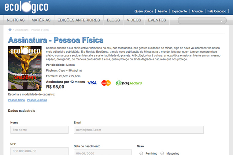 Sempre quando a lua cheia estiver brilhando no céu, nas montanhas, nas gentes e cidades, algo de novo acontece no meio editorial e publicitário. É a Revista ECOLÓGICO, uma publicação feita por quem tem um compromisso afetivo com a causa socioambiental e a sustentabilidade do planeta. O projeto para a Revisa Ecológico contou com as fase de planejamento, Design, HTML e CSS e tinha o objetivo de trazer as matérias da revista impressa para a web de forma que a leitura fosse facilitada.