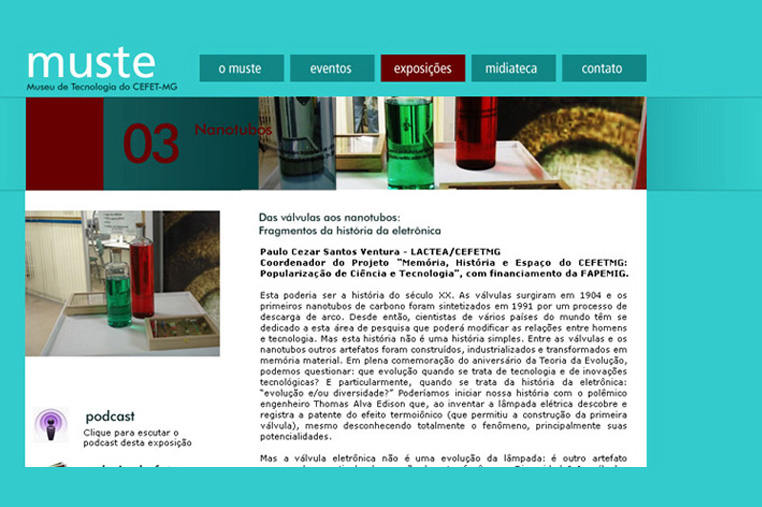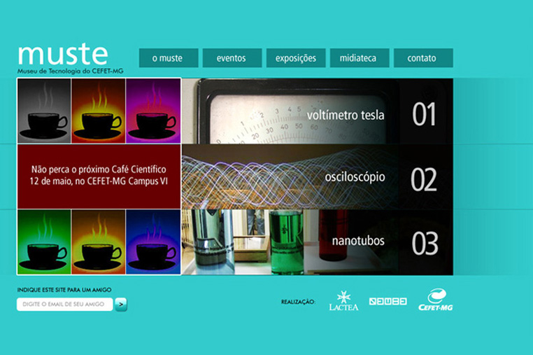 Projeto realizado na Intensiva Comunicação e Design em 2008. Criação do site para o Museu de Tecnologia do CEFET-MG.