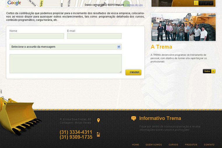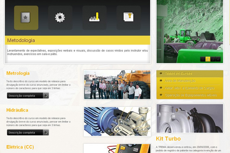 Intensiva Comunicação e Design - 2010. A Trema é especializada em cursos de capacitação e treinamento para manutenção em máquinas pesadas. O desafio era criar um site que integrasse os processos internos de divulgação e as relações dos possiveis interessados nos cursos e produtos da empresa. Tudo isso aliado a uma navegação fácil e simplificada.